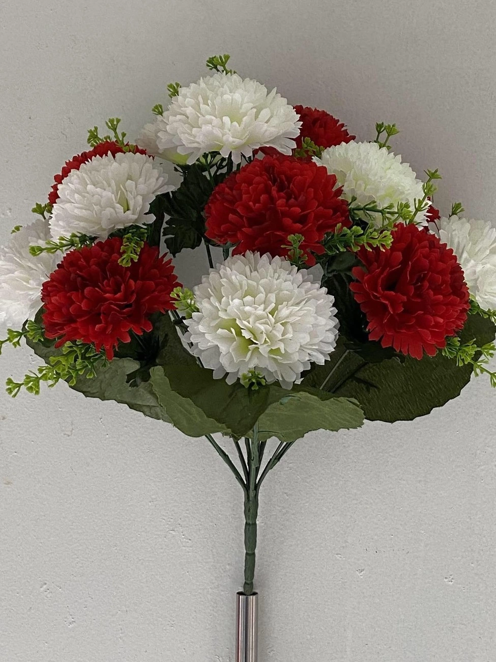 Искусственные цветы оптом Хризантема двухцветная К+Б с лопухом вазон