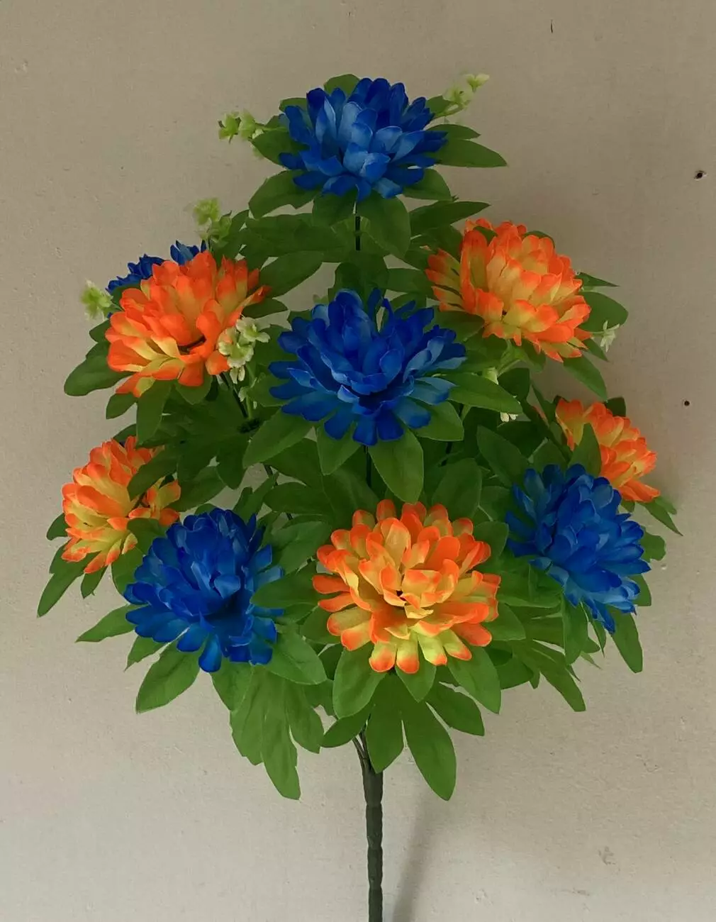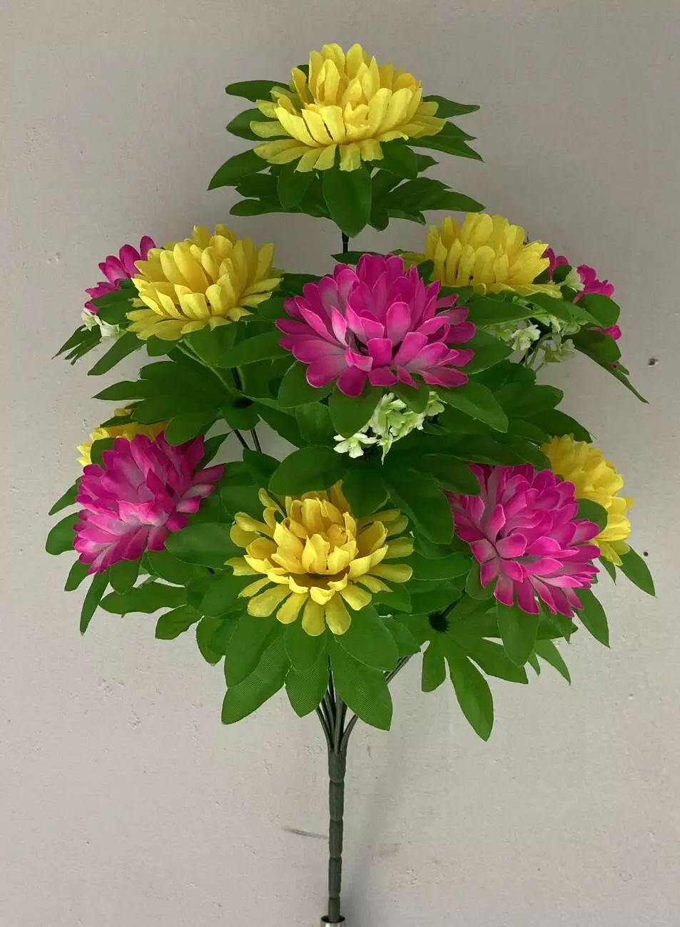 Штучні квіти оптом. Хризантема з листом двукольорова не прес