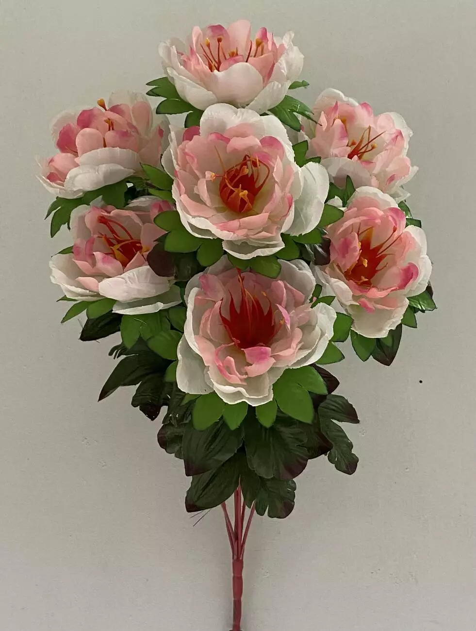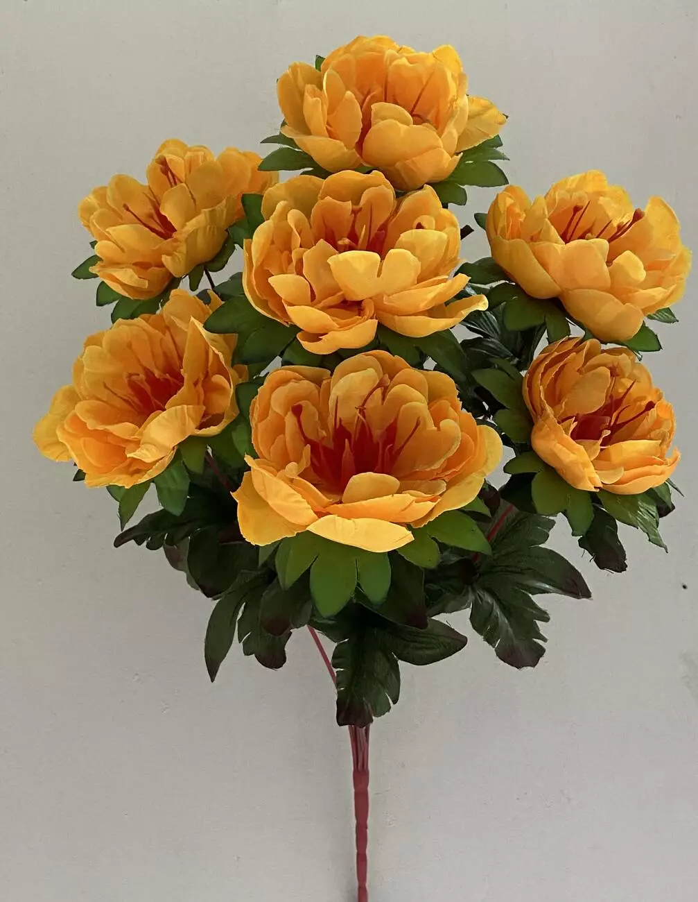 Штучні квіти оптом. Півонія нова з листом червона ніжка