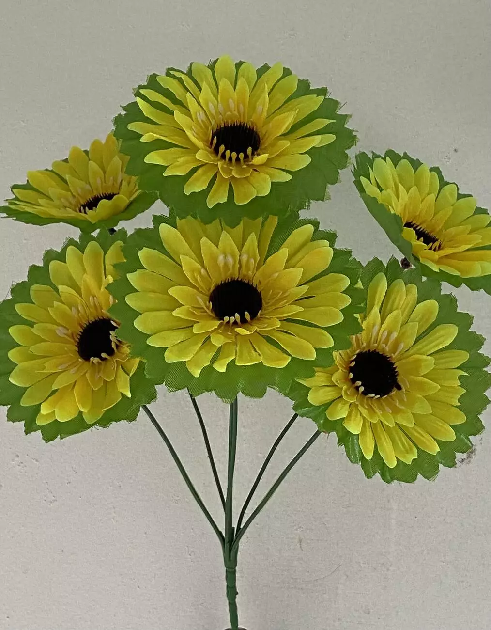 Штучні квіти оптом. Ромашка кольорова з лістом