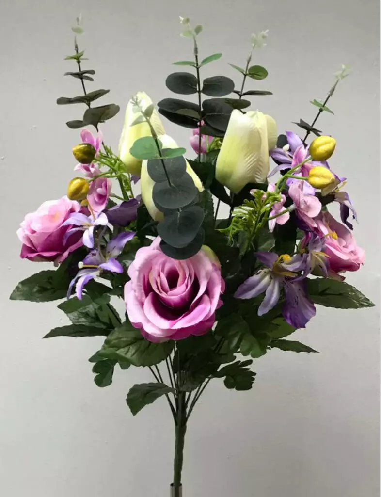 Штучні квіти оптом . Троянда+Тюльпан з орхідею з єфкаліптом